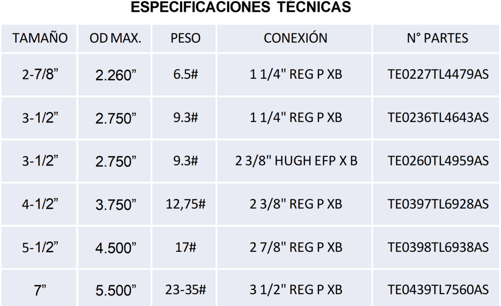 2. Concentración máxima de arena permitida: 0.4 PPG para Colgadores para Empaque con Grava de 8-5/8” y 7”