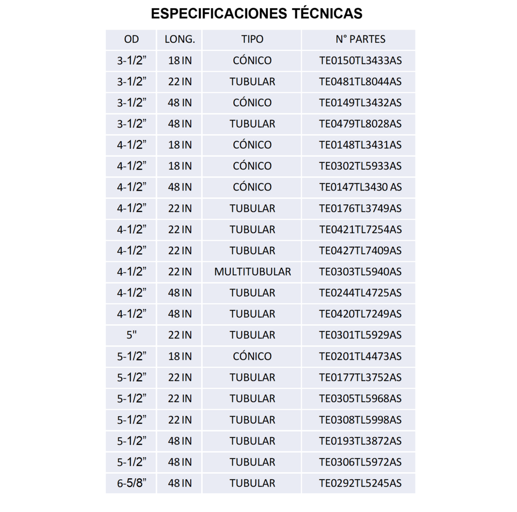 Las longitudes y los diámetros de las cuchillas se encuentran disponibles dependiendo del diámetro de la tubería a cortar.