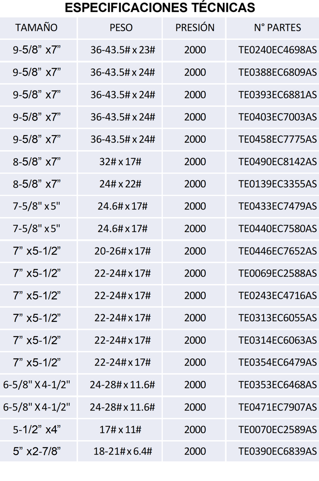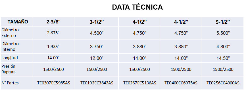 6. Presión diferencia máxima permitida durante las operaciones de Empaque: 4000 PSI.